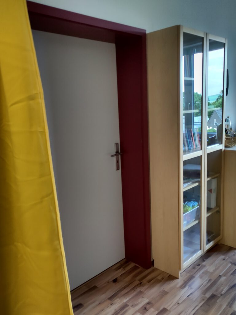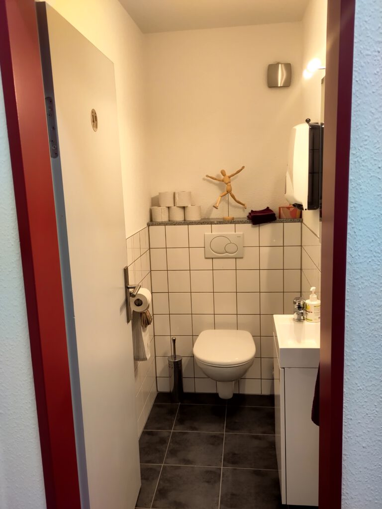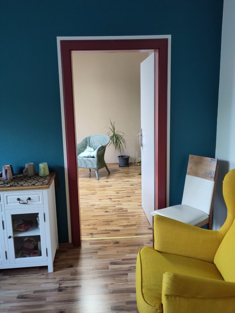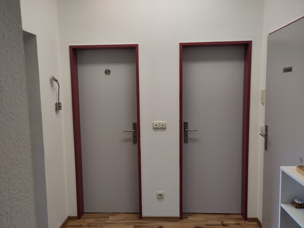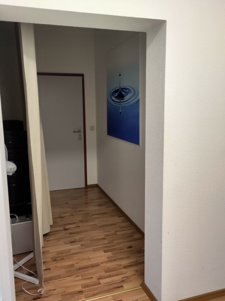 Praxisraum Sicht von der TürPraxisraum innen, Blick von der TürEingangsbereich – ToiletteToiletteZwischenraum – Blick in den PraxisraumZwischenraum – Tür zum Praxisraum meiner KolleginBlick aus dem Eingangsbereich, Tür zum YogaraumPraxisraum innen (Blick vom Fenster aus)